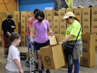 Yellow Cappers are long-time JRA volunteers with crucial jobs in the warehouse during monthly Food Distributions and serve as JRA ambassadors in the community. From restocking assembly lines to controlling traffic to organizing the volunteer refreshments, these volunteers have committed to attending at least 8 Distributions a year and you can identify them by their yellow shirts and caps!